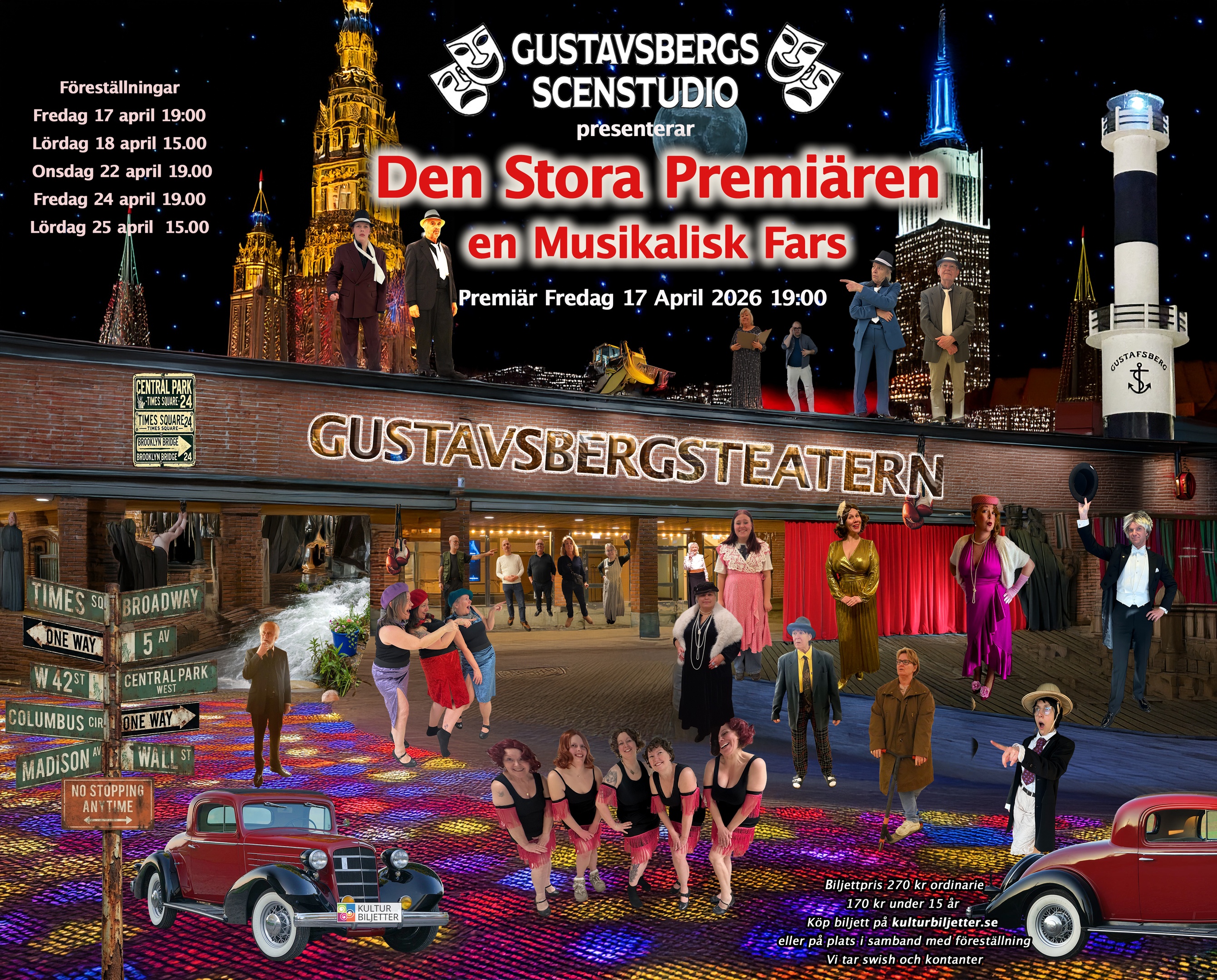 På GustavsbergsScenstudio skapar vi magiska stunder som förenar teater, musik och gemenskap. Vår passion för scenkonst lyser igenom i varje föreställning, där skratt och glädje blandas med fantasifulla berättelser. Från klassiska pjäser till moderna musikalisk fars, som 'Den stora premiären', erbjuder vi en plattform för både erfarna och blivande talanger att uttrycka sig. Besök oss för en oförglömlig kväll – vi lovar underhållning och skratt!